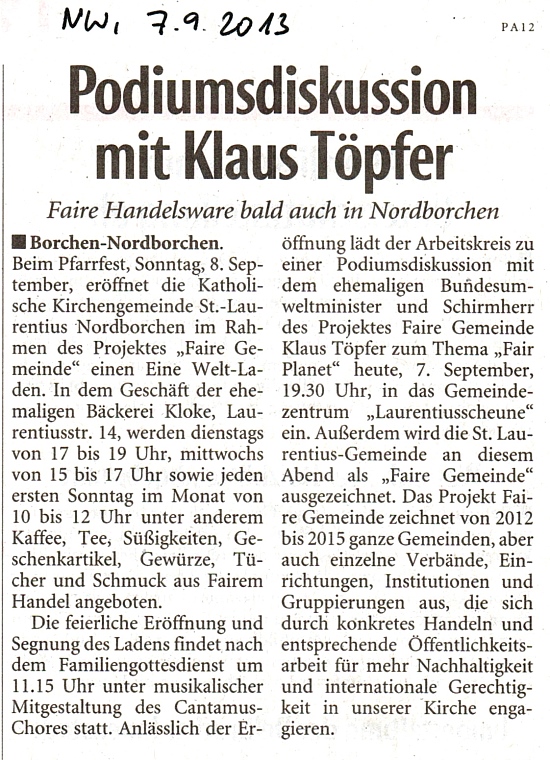 Neue Westfälische 07.09.2013